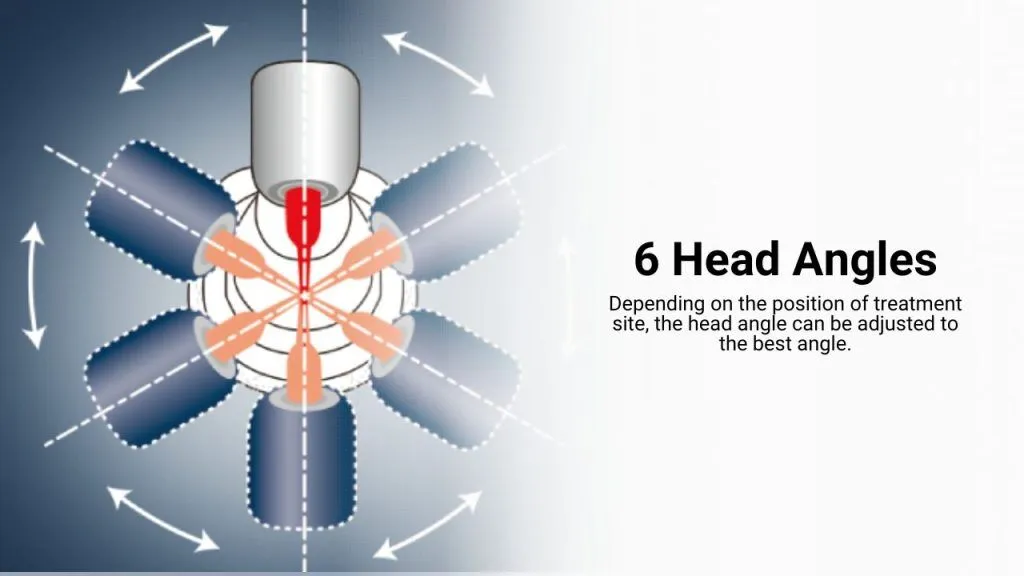Six head angles can be adjusted depending on the treatment site position, providing optimal access and visibility.