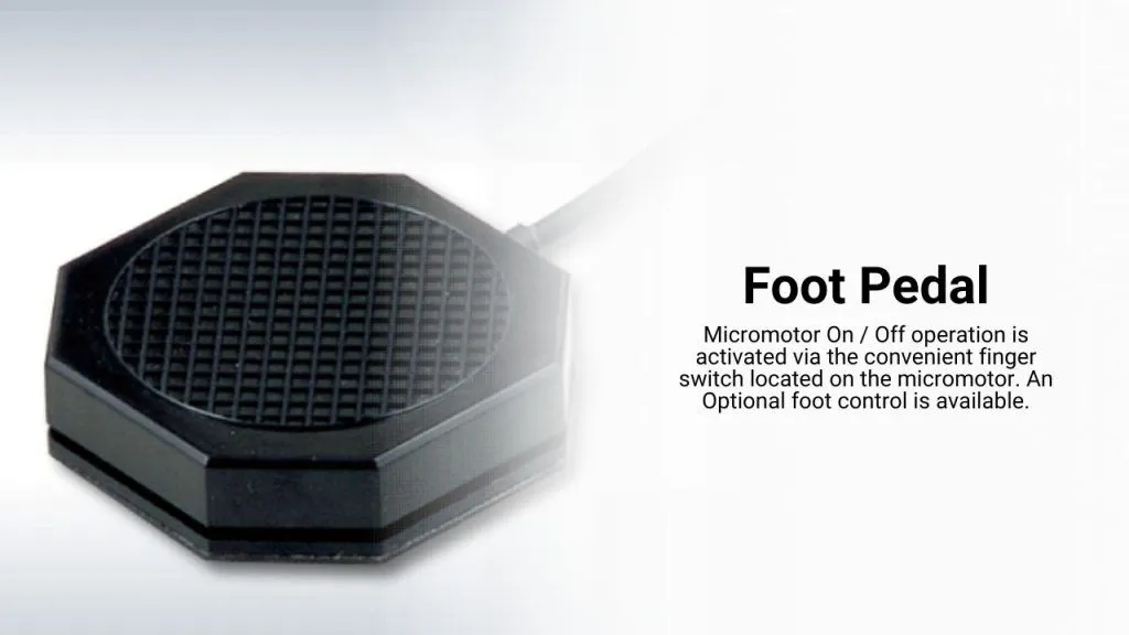 Micromotor on/off operation can be activated via a finger switch on the micromotor.
